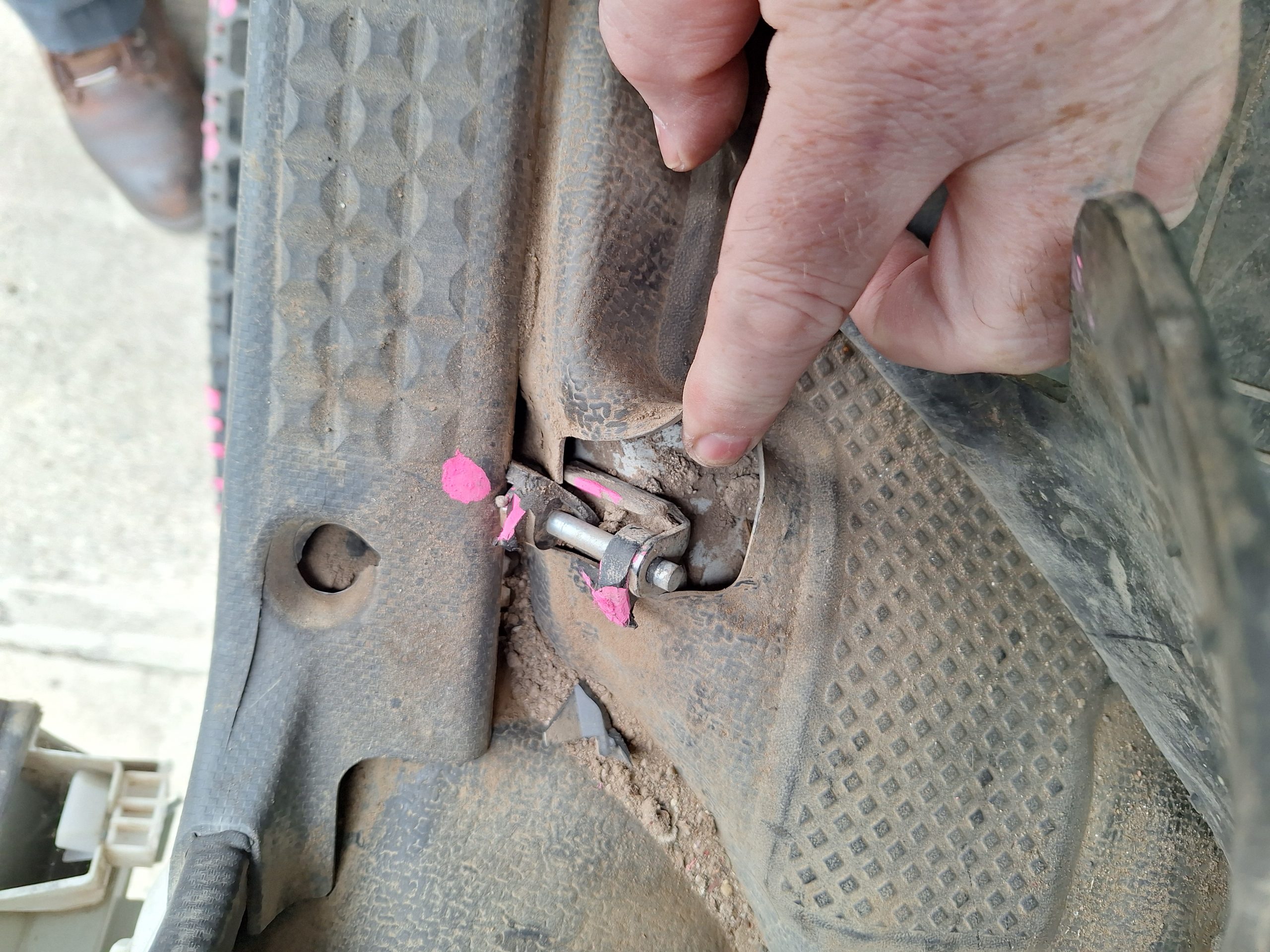 The force of the blow had travelled further through the vehicle than expected. Not only was the corner structure compromised, but the flooring was damaged, and the accelerator pedal had actually snapped off its mounts. This kind of underlying structural distortion can severely affect drivability and safety, making professional inspection and alignment essential.