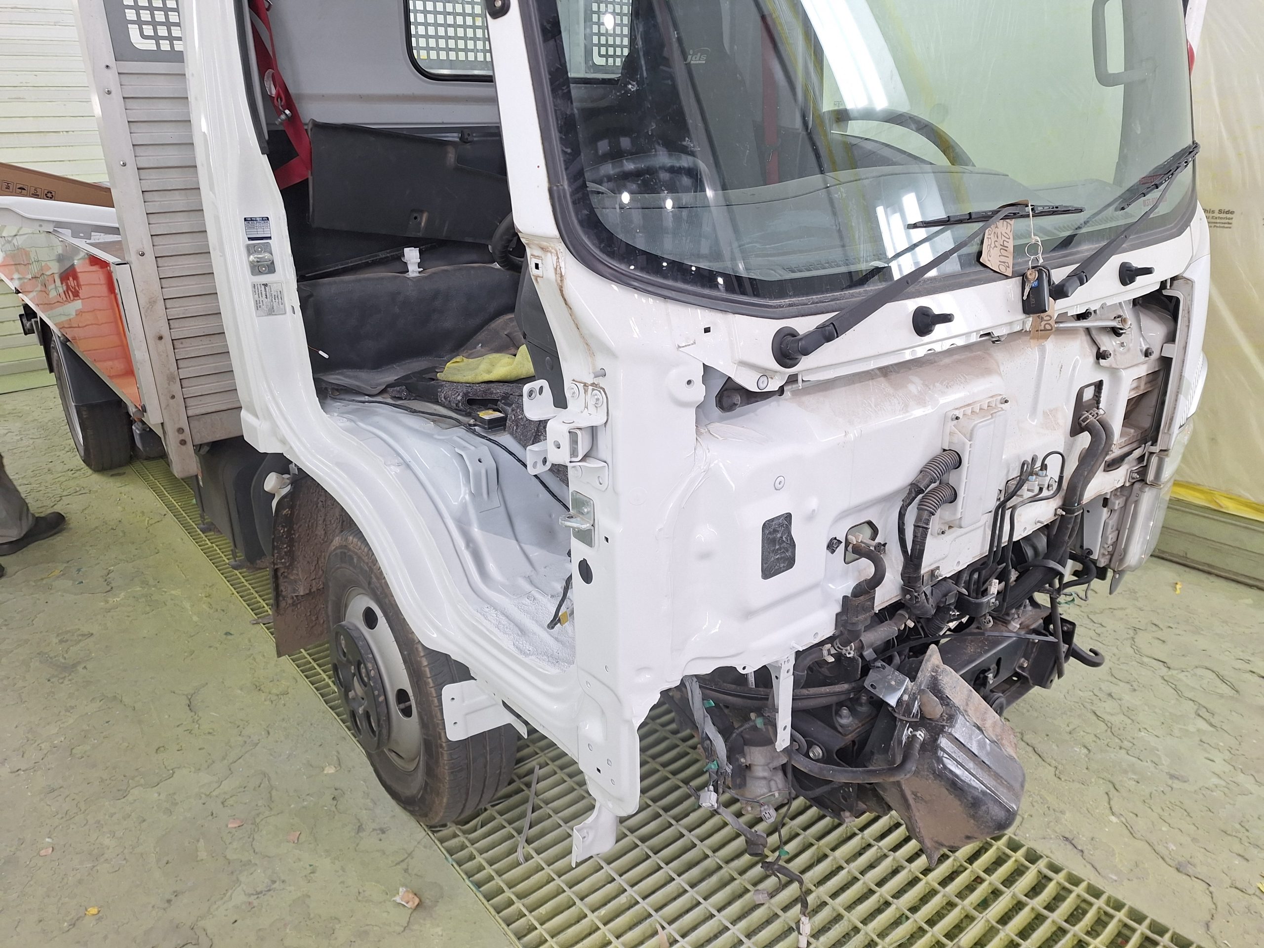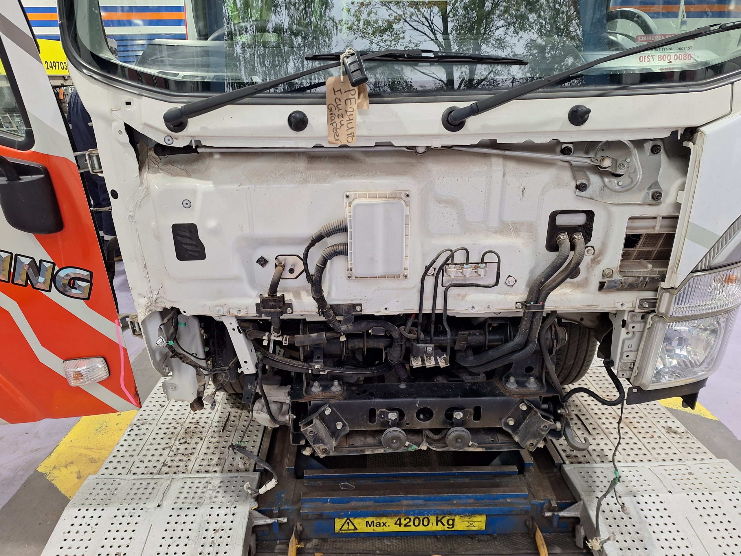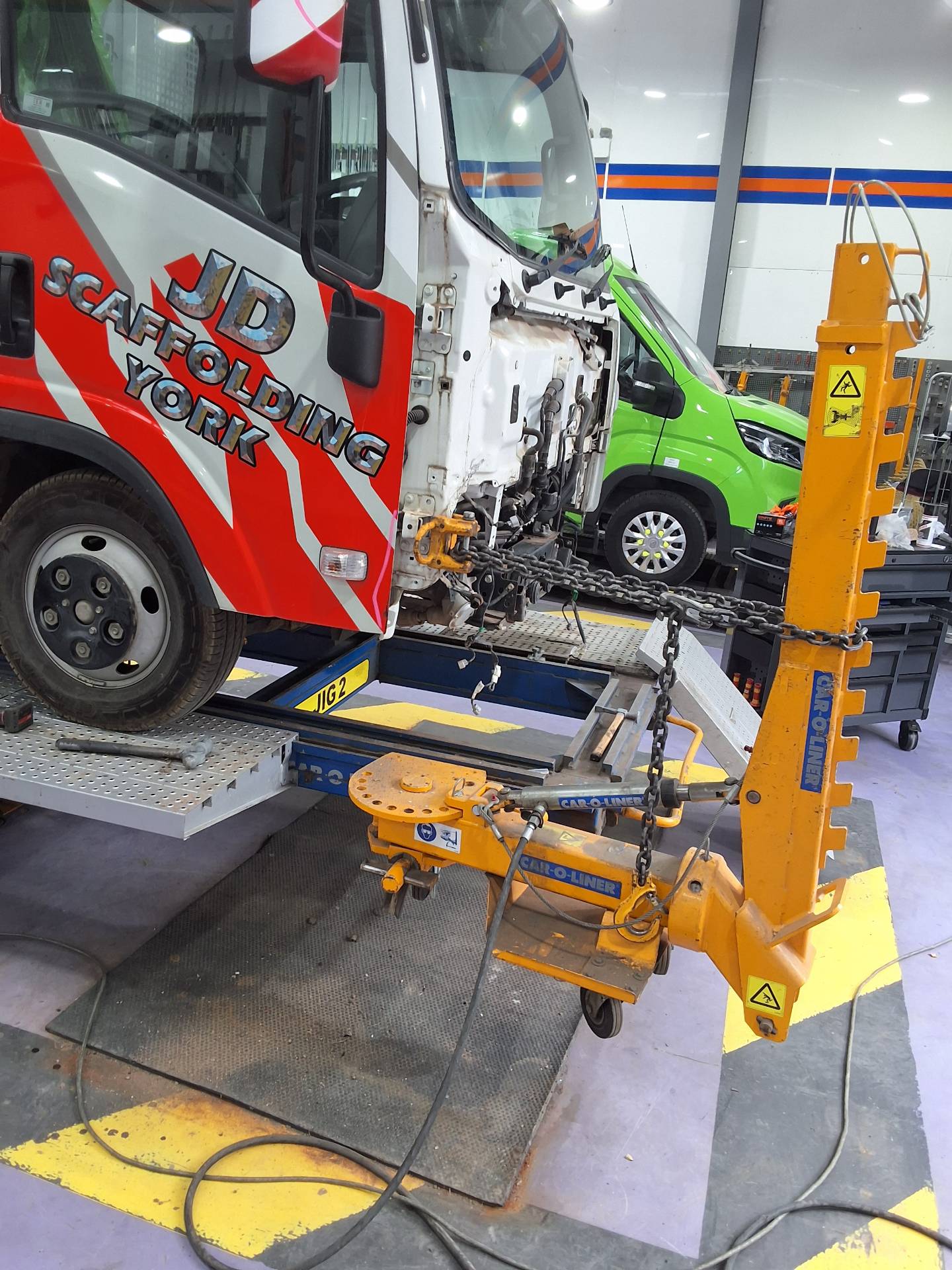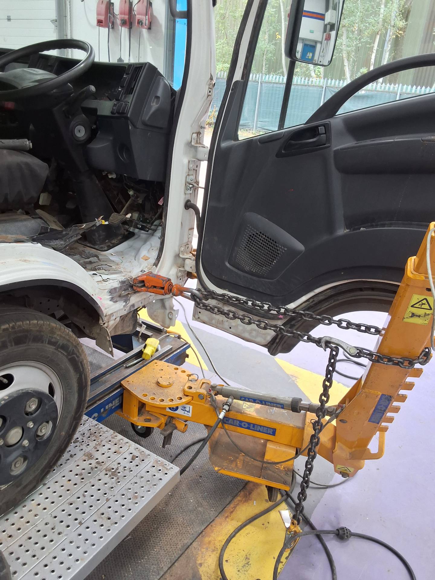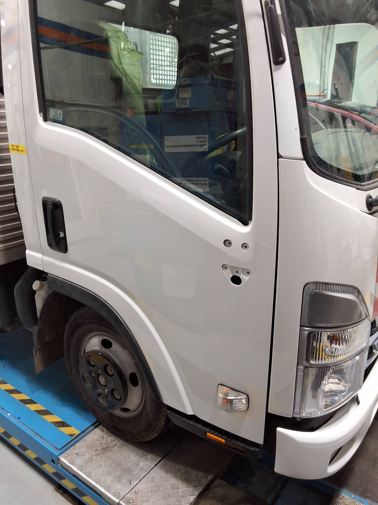 Our technicians got the Isuzu onto the jig, and after a few hours of careful adjustment, the chassis and cab were brought back square and structurally sound. Once the alignment was corrected, we moved on to restoring the damaged components and bodywork.