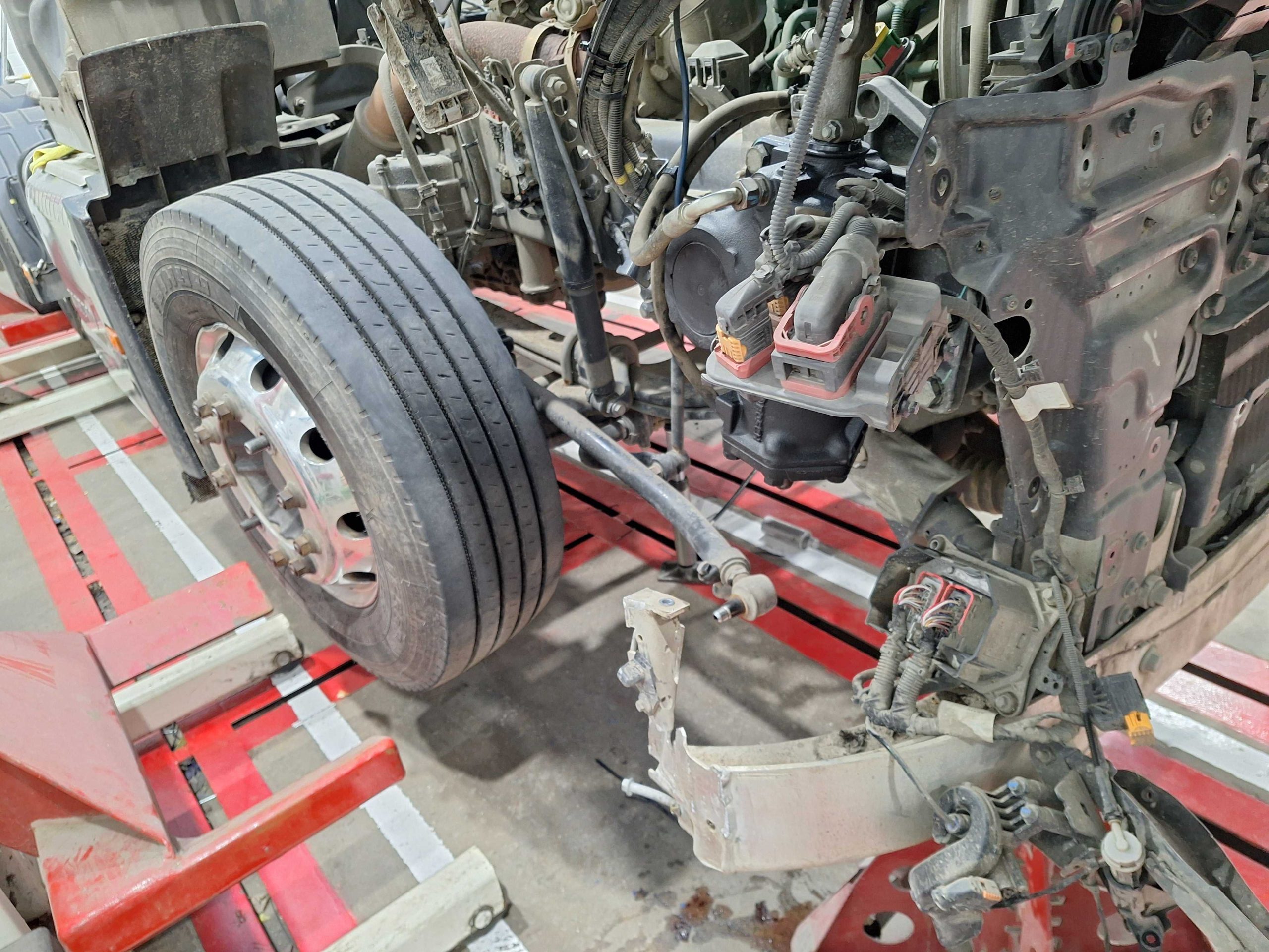 Once the chassis was correctly aligned, we rebuilt the front axle mounts and performed a complete inspection of the suspension, steering, and underframe components. Every aspect was checked and verified against Volvo’s manufacturer specifications, guaranteeing the truck’s structural integrity and road safety.